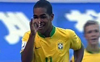 Na próxima partida, a seleção brasileira enfrenta a Coréia do Norte, na terça-feira, às 8h da manhã (horário de Brasília). Uma vitória já garante a classificação para as oitavas-de-final. O destaque da seleção foi o meia vascaíno Alex Teixeira. Ele fez um golaço no segundo tempo e ainda deu o passe para outros três gols brasileiros. Lulinha, revelação do Corinthians, e o lateral-esquerdo Fábio, do Fluminense, também tiveram boas atuações. Gol histórico O Brasil construiu a vitória logo nos primeiros minutos. Primeiro com um gol-relâmpago de Fabinho. Com apenas nove segundos de jogo, o lateral Fábio lançou para a área, Alex Teixeira escorou de cabeça e o atacante do Internacional chegou batendo de primeira no canto esquerdo do goleiro Gleeson: 1 a 0. O gol de Fabinho foi o mais rápido da história da competição organizada pela Fifa. Depois com o zagueiro Lázaro, que aos seis minutos, após a cobrança de escanteio, chutou rasteiro sem chance para o goleiro Gleeson e fez 2 a 0. Bem organizada em campo, a seleção brasileira dominava a partida e perdia boas chances de ampliar. O lateral Fábio chutou da entrada da área e Gleeson fez ótima defesa salvando a Nova Zelândia. Pouco depois Alex Teixeira arrancou pela direita, se livrou da marcação de Keomahaving e Mathews, invadiu a área e chutou. Mas a bola foi para fora. Aos 19 minutos, Lulinha mandou uma bomba no ângulo direito, mas o chute passou muito perto do gol. A Nova Zelândia só chegou com algum perigo aos 31 minutos. O goleiro Marcelo segurou o atacante Barbarouses dentro da área. Pênalti bem marcado pelo árbitro polonês Grzegorz Gilewski. Mas o brasileiro se redimiu e defendeu a cobrança no meio do gol de Barbarouses. Irritado com a diminuição de ritmo da seleção, o técnico Luiz Antônio Nizzo começou a gritar na lateral. Ele reclamava principalmente do grande número de passes errados. A bronca deu certo. Alex Teixeira deu excelente toque para Giuliano, que entrou na área e tocou por cima do goleiro Gleeson marcando o terceiro gol brasileiro e dando mais tranqüilidade ao time no fim do primeiro tempo. Mais gols e show no segundo tempo A seleção brasileira voltou animada para o segundo tempo. No primeiro minuto, Fabinho chutou de fora da área e obrigou o goleiro Gleeson fazer boa defesa. Logo depois foi a vez de Tales quase marcar. Em seguida, Alex Teixeira desceu em velocidade pelo lado esquerdo, invadiu a área e tocou para Fábio, que chegou chutando. A bola entrou no ângulo de Gleeson: Brasil 4 a 0. O quinto gol veio poucos minutos depois. E foi um golaço. Alex Teixeira recebeu na área, driblou Hobbs e Myers e com o pé direito chutou rasteiro no canto do goleiro. O jogo estava fácil. Desmotivada, a Nova Zelândia dava espaços para a seleção brasileira. E aos 14 minutos, o lateral-esquerdo Fábio sofreu pênalti. Lulinha cobrou com categoria e fez o sexto gol. Os meninos brasileiros passaram, então, a administrar a partida e tocar mais a bola. Mas a seleção ainda fez mais um com o atacante Júnior, que havia entrado no lugar de Fabinho. Ele aproveitou a jogada de Bruno Collaço pela esquerda e desviou para o gol. Uma estréia tranqüila para uma seleção que parece ter recuperado a confiança após o fracasso nos Jogos Pan-Americanos, em que foi eliminada na primeira fase ao perder para o Equador em um Maracanã lotado. O Brasil é o maior vencedor do Mundial sub-17, com três títulos. Nas últimas seis finais, esteve presente em cinco. Alex Teixeira é o destaque da estréia Desta vez não foi Lulinha quem brilhou. O melhor jogador brasileiro em campo neste sábado na goleada de 7 a 0 sobre a Nova Zelândia, na estréia do Mundial sub-17, foi o vascaíno Alex Teixeira.