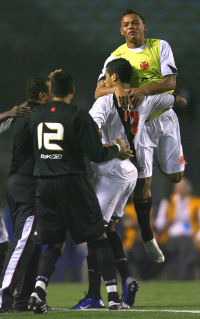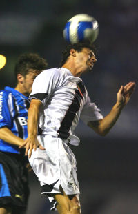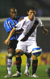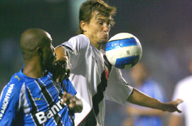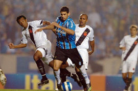 | NETVASCO - 05/09/2007 - 23:40 - Vasco perde invencibilidade de dez jogos: Grêmio 3 a 1 no Olímpico O Grêmio precisava da vitória sobre o Vasco, no estádio Olímpico, para se aproximar do G-4 e do próprio adversário enfrentado na noite desta quarta-feira, que está a sua frente na tabela. E conseguiu se impor, fazendo 3 a 1, embora o resultado não o tenha feito alcançar o time carioca e nem afastar o rival da zona que leva à Libertadores da América 2008. O Vasco segue com 39 pontos ganhos no Campeonato Brasileiro, e se mantém entre os quatro ponteiros, mas perdeu uma invencibilidade na competição que chegaria a dez jogos consecutivos caso não fosse derrotado. O Grêmio, por sua vez, agora totaliza 38 e se fortaleceu na luta por uma vaga à maior competição sul-americana. No próximo sábado, curiosamente, os dois times que se encararam em Porto Alegre enfrentarão líder e vice-líder do Brasileirão. O Vasco receberá o São Paulo, primeiro colocado, enquanto o Grêmio vai a Belo Horizonte enfrentar o vice-líder Cruzeiro. A partida começou num ritmo alucinante, com dois times demonstrando que só pensavam na vitória, sem maiores preocupações defensivas. Logo aos 9min, numa cobrança de falta frontal à meta vascaína, o lateral-direito Bustos fez uma cobrança perfeita e mandou a bola no ângulo superior direito de Sílvio Luiz, fazendo 1 a 0. O Vasco empatou aos 15, com Alan Kardec, que se aproveitou de uma trapalhada da defesa gremista e, de fora da grande área, mandou rasteiro no canto inferior esquerdo de Saja Uma igualdade que durou apenas um minuto, porque aos 16 Tuta descobriu Ramon invadindo a grande área e lançou esse, que dominou com o pé esquerdo e com o direito mandou certeiro no canto. O confronto seguiu com lances perigosos para lá e para cá, e Alan Kardec teve dois momentos em que poderia ter voltado a marcar e empatado, mas foram duas cabeceadas nas quais uma raspou o poste e outra acabou nas mãos de Saja. O Vasco acabou o primeiro tempo atrás no marcador e sem o volante Perdigão, que lesionado teve de ser substituído por Roberto Lopes. Fora essa troca, as duas equipes retornaram para a segunda etapa sem alterações. Aos 10min o volante gremista Marcelo Labarthe, que já tinha cartão amarelo, fez falta violenta, recebeu o segundo e acabou expulso, deixando o Grêmio com um a menos em campo. Celso Roth imediatamente tirou um dos três zagueiros, Vilson, e escalou Leandro Bomfim, em busca do segundo gol. Mas sete minutos depois Jorge Luiz foi expulso ao atingir Tcheco e o Vasco também ficou com 10 jogadores em campo e agora com sua estrutura defensiva destruída. Disso se aproveitou o Grêmio que fez 3 a 1 aos 25min, numa jogada que começou com o centroavante Tuta. Ele deu de calcanhar a Hidalgo e esse fez o passe a Sandro Goiano, que livre de marcação mandou no canto inferior esquerdo de Silvio Luiz. O Vasco perdeu uma chance clara de descontar, aos 36, com Wagner Diniz, que após driblar o goleiro Saja mandou o chute por cima da meta, mas além disso não demonstrou maior poder de reação e ficou estacionado na tabela, apenas um ponto à frente do próprio Grêmio, que entrou de vez na luta por vaga no G-4. GALERIA