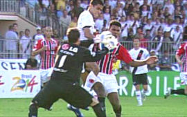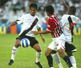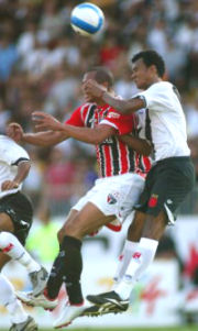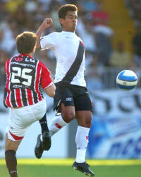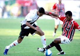 | NETVASCO - 08/09/2007 - 18:03 - Vasco perde invencibilidade em São Januário: São Paulo 2 a 0 O São Paulo comprovou que é o grande favorito ao título do Brasileirão. Mesmo diante do Vasco, até então invencível em São Januário, os paulistas suportaram a pressão carioca e, com gols de Dagoberto e Hernanes, venceram por 2 a 0, neste sábado à tarde. Agora, o Tricolor subiu para 54 pontos, 12 a mais que o vice-líder Cruzeiro, que ainda enfrentará o Grêmio neste sábado. Caminhando a passos largos em direção ao quinto título nacional, o Tricolor paulista está há treze rodadas sem derrotas - 11 vitórias e dois empates. Além disso, o goleiro Rogério Ceni não é vazado há 898 minutos. Pelo lado vascaíno, a derrota pôs fim à invencibilidade de um ano e dois dias (22 jogos, com 16 vitórias e 6 empates, 59 gols a favor e 11 contra) jogando no Alçapão. Desde o revés para o Corinthians, pela Sul-Americano de 2006, o time cruzmaltino estava invicto. Neste Brasileiro, são nove vitórias, dois empates até a derrota deste sábado. Durante toda primeira etapa, as equipes fizeram o que estavam propostas. Apoiado pela torcida, que lotou São Januário, o Vasco pressionou o São Paulo nos 45 minutos iniciais. O goleiro Rogério Ceni quase viu sua invencibilidade sem sofrer gols ir para o espaço. Por sorte do camisa 1, a trave o salvou por duas vez. No primeiro lance, Amaral acertou um petardo de fora da área e a bola explodiu no travessão. No segundo lance, Júlio Santos cabeceou e, Rogério Ceni vendido no lance só torceu para a bola bater pela segunda vez no poste. Quando a trave não salvou, o capitão são-paulino mostrou porque é o craque do Sampa, como fez na bela defesa em chute de Rubens Júnior. Se o Vasco saiu do primeiro tempo com a sensação de que poderia estar vencendo o jogo, os visitantes agradeceram pelo placar sem gols. Sem mostrar a mesma eficiência dos últimos jogos, o Tricolor não conseguiu trocar dois passes seguidos. Os cariocas correram tudo o que podiam na primeira etapa, pois no segundo tempo diminuíram o ritmo e permitiram a reação são-paulina. O atacante Dagoberto, destaque do times nas últimas rodadas, comprovou todo valor investido nele. Aos 16, o camisa 25 fez fila e acertou um lindo chute para abrir o placar. O gol desanimou o time carioca, que tentava chegar ao empate, mas sem muita eficiência. Com o placar na mão, o Tricolor fez valer o seu poder defensivo e ainda achou tempo para selar a vitória com gol de Hernanes, já nos acréscimos. Pelo Brasileirão, as equipes só voltam a campo no próximo fim de semana. No sábado, o São Paulo recebe o Santos, no Morumbi. Já no domingo, o Vasco duela com Flamengo no Maracanã. Porém, antes disso, os cariocas recebem o Atlético Paranaense na quarta-feira, pela Sul-Americana. GALERIA