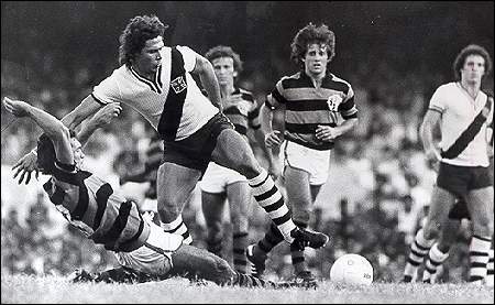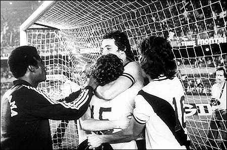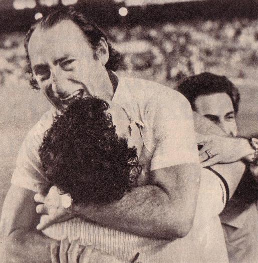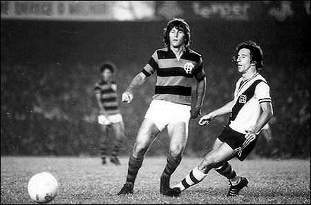 Primeiro Turno (Taça Guanabara)FICHA TÉCNICA DO JOGO DO TÍTULO VASCO 0 X 0 FLAMENGO (Nos pênaltis, Vasco 5 x 4) Competição: Campeonato Carioca (2º Turno - Taça Manoel do Nascimento Vargas Netto - Jogo-desempate). Estádio: Maracanã, no Rio de Janeiro (RJ). Data: 28/setembro/1977 (quarta-feira). Árbitro: Giése do Couto. Auxiliares: José Maria Brandão e Elson Pessoa. Cartões amarelos: Toninho (FLA), Cláudio Adão (FLA), Wilsinho (VAS). Público: 152.059 pagantes. Renda: Cr$ 6.162.851,00. VASCO: 1-Mazzaropi; 4-Orlando, 2-Abel, 3-Geraldo e 6-Marco Antônio; 5-Zé Mário, 8-Zanata (14-Helinho) e 11-Dirceu; 7-Wilsinho (15-Zandonaide), 10-Roberto Dinamite e 9-Paulinho. Técnico: Orlando Fantoni. Reservas não-utilizados: 12-Jair Bragança, 13-Gaúcho e 16-Guina. FLAMENGO: 1-Cantarelli; 2-Ramirez (15-Tita), 3-Rondinelli, 4-Dequinha e 6-Júnior; 6-Merica (14-Vanderlei Luxemburgo), 8-Adílio e 10-Zico; 7-Toninho, 9-Cláudio Adão e 11-Osni. Técnico: Cláudio Coutinho. Reservas não-utilizados: 12-Roberto, 13-Nelson e 16-Luís Paulo. Decisão por pênaltis: Júnior (FLA) - gol - Flamengo 1 a 0 Paulinho (VAS) - gol - 1 a 1 Cláudio Adão (FLA) - gol - Flamengo 2 a 1 Orlando (VAS) - gol - 2 a 2 Osni (FLA) - gol - Flamengo 3 a 2 Dirceu (VAS) - gol - 3 a 3 Tita (FLA) - Mazzaropi defendeu - 3 a 3 Zandonaide (VAS) - gol - Vasco 4 a 3 Zico (FLA) - gol - 4 a 4 Roberto Dinamite (VAS) - gol - Vasco 5 a 4 LANCE A LANCE 1º Tempo 6' - Confusão na área, Zé Mário salva na linha do gol. 26'- Osni invade a área, cai e pede pênalti. 44' - Dinamite bate fraco para a defesa de Cantarelli. 2º Tempo 3' - Zico cobra falta com perigo. 6' - Orlando chuta forte, Cantarelli dá rebote, Roberto toca para Dirceu que perde a chance. 11' - Triangulação entre Dinamite, Paulinho e Zanata que chuta para a boa defesa de Cantarelli. 31' - Cláudio Adão bate bem e Mazzaropi faz ótima defesa. 41' - Contra-ataque rápido de Roberto e Wilsinho que Adílio salva quase dentro do gol. 45' - Cláudio Adão chuta e Mazzaropi defende novamente. Prorrogação - 1º Tempo 3' - Paulinho penetra na área e toca para Dinamite, que chuta fraco nas mãos do goleiro. 8' - Orlando manda uma bomba de falta rente à trave. 14' - Zico cobra falta com muito perigo para fora. Prorrogação - 2º Tempo 1' - Marco Antônio corta cruzamento que ia na direção de Cláudio Adão na área. GALERIA ![]() ![]() ![]() ![]() ![]() ![]() ![]() ![]() ![]() ![]() ![]() ![]() ![]() ![]() ![]() ![]() ![]() ![]() ![]() ![]() ![]() ÁUDIO (clique nos links para ouvir o MP3) 1º e 2º gols de Roberto Dinamite no jogo Vasco 2 x 0 Botafogo, que deu o título da Taça Guanabara 1977 ao Vasco (Rádio Globo - José Carlos Araújo). Decisão por pênaltis contra o Flamengo, no jogo-desempate (0 a 0 no tempo normal, Vasco 5 a 4 nos pênaltis) que definiu o Vasco como campeão do 2º turno e do Campeonato Carioca 1977 (Rádio Tupi - Doalcey Camargo). VÍDEO Agradecimentos a Alexandre Mesquita e Mauro Prais. Fonte: NETVASCO (texto, ficha), Jornal dos Sports (lance a lance), Site Mauro Prais (fotos, campanha), O Globo (fotos), Placar (fotos), Jornal dos Sports (foto), Site da Força Jovem (foto), RSSSF (classificação, artilharia), TVE/TV Bandeirantes/Youtube (vídeo), Canal 100/Youtube (vídeo), Rádio Globo/digitalizado por Mauro Prais (áudio), Rádio Tupi/digitalizado por NETVASCO (áudio) |