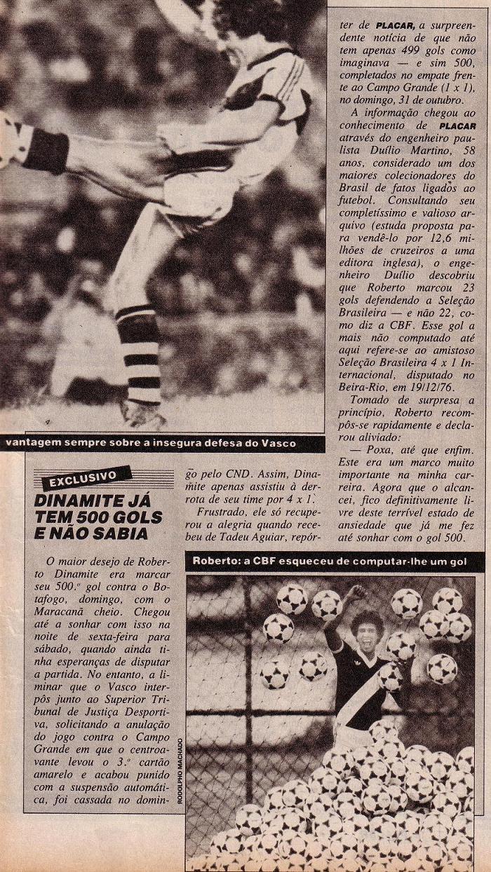 ![]() ![]() Agradecimento a Alexandre Mesquita e Mauro Prais Fonte: NETVASCO (texto - exceto quando indicado), NETVASCO (ficha), Rádio Globo/digitalizado por NETVASCO (áudio), Revista Placar (capas, reportagem digitalizada), Jornal dos Sports (foto), Site Mauro Prais (convite), Site oficial Roberto Dinamite (diploma) |