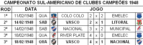 Árbitro: Higino Madrid (CHI). Público: 45.000 pagantes. Gols: Ademir 11'/1ºT (VAS), Wálter Gómez 25'/1ºT (NAC), Maneca 23’/2ºT (VAS), Danilo 25'/2ºT (VAS), Friaça 44'/2ºT (VAS). VASCO: Barbosa, Wilson e Rafagnelli; Ely, Danilo e Jorge; Djalma, Maneca, Friaça, Ademir (Ismael 18'/2ºT) e Chico. NACIONAL-URU: Paz, Raul Pini e Tejera; Gambetta (Talba 27'/2ºT), Rodolfo Pini e Cajiga;