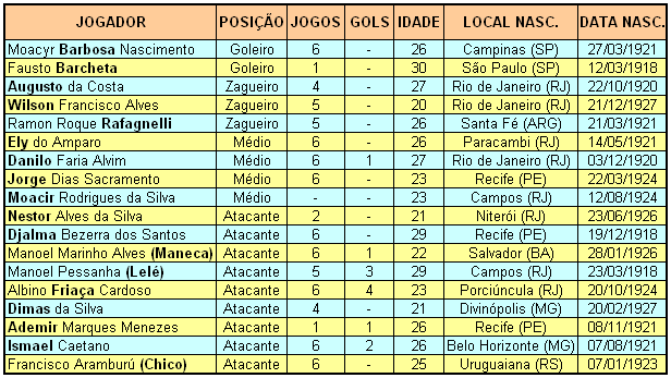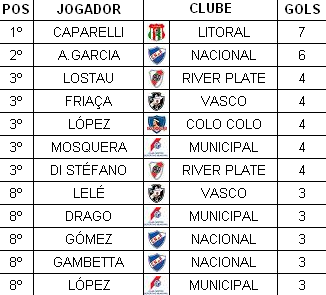 Expulsões: Chico 39'/2ºT (VAS), Mendez 39'/2ºT (RIV). Gols: - VASCO: Barbosa, Augusto e Wilson (Rafagnelli 20'/2ºT); Ely, Danilo e Jorge; Djalma, Maneca (Lelé 46'/2ºT), Friaça (Dimas 46'/2ºT), Ismael e Chico. Técnico: Flavio Costa. RIVER PLATE-ARG: Grizetti, Vaghi e Rodríguez; Yácono (Mendez 18'/2ºT), Rossi e Ramos (Ferrari 9'/1ºT); Reyes (Muñoz, intervalo), Moreno, Di Stéfano, Labruña e Losteau. Técnico: José Maria Minela. ESTATÍSTICAS DA PARTIDA