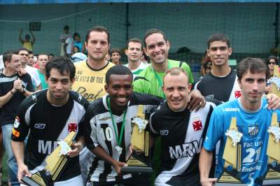 | NETVASCO - 04/05/2008 - DOM - 15:15 - Futebol Society: Vasco vence CFZ por 4 a 2 e conquista o Brasileiro Vasco e CFZ do Rio disputaram, neste domingo (04/05), no campo do Colégio São Vicente de Paulo, em Niterói, o título do 1º Campeonato Brasileiro de Clubes de Futebol Society, organizado pela Confederação de Futebol Sete Society do Brasil (CFSSB). O Vasco venceu por 4 a 2 e se sagrou o campeão brasileiro 2008. Os gols do Vasco foram marcados por Leleco (2) e Chumbinho (2). Os jogadores do Vasco Fred, Leleco e Chumbinho foram eleitos para a seleção do campeonato. Na campanha rumo ao título, o Clube da Colina, que disputou a competição numa parceria com o Niterói Society, enfrentou o São Paulo, o Bragantino, o Coritiba, o Corinthians e o Santos, além do CFZ na decisão. TABELA COMPLETA PRIMEIRA FASE GRUPO A: América-MG, Atlético-PR, CFZ-RJ, Corinthians-SP 01/05 - Corinthians-SP 5 x 4 Atlético-PR 01/05 - América-MG 2 x 6 CFZ-RJ 02/05 - América-MG 2 x 2 Atlético-PR 02/05 - Corinthians-SP 3 x 3 CFZ-RJ 03/05 - CFZ-RJ 4 x 3 Atlético-PR 03/05 - Corinthians-SP 3 x 2 América-MG 1º CFZ-RJ 7 pts, 2º Corinthians-SP 7 pts, 3º Atlético-PR 1 pt, 4º América-MG 1 pt GRUPO B: Bragantino-SP, Coritiba-PR, São Paulo-SP, Vasco/Niterói Society-RJ 01/05 - Vasco/Niterói Society-RJ 4 x 2 São Paulo-SP 01/05 - Coritiba-PR 5 x 7 Bragantino-SP 02/05 - Coritiba-PR 1 x 7 São Paulo-SP 02/05 - Bragantino-SP 4 x 3 Vasco/Niterói Society-RJ 03/05 - Coritiba-PR 1 x 8 Vasco/Niterói Society-RJ 03/05 - São Paulo-SP 1 x 1 Bragantino-SP 1º Bragantino-SP 7 pts, 2º Vasco/Niterói Society-RJ 6 pts, 3º São Paulo-SP 4 pts, 4º Coritiba-PR 0 pt GRUPO C: Atlético-MG, Desportiva-ES, Portuguesa-SP, Santos-SP 01/05 - Atlético- MG 2 x 2 Desportiva-ES 01/05 - Portuguesa-SP 8 x 8 Santos-SP 02/05 - Santos-SP 4 x 1 Desportiva-ES 02/05 - Atlético-MG 2 x 2 Portuguesa-SP 03/05 - Santos-SP 3 x 2 Atlético-MG 03/05 - Portuguesa-SP 2 x 1 Desportiva-ES 1º Santos-SP 7 pts, 2º Portuguesa-SP 5 pts, 3º Atlético-MG 2 pts, 4º Desportiva-ES 1 pt QUARTAS-DE-FINAL 03/05 - Santos-SP 4 x 1 Atlético-MG 03/05 - CFZ-RJ 6 x 1 São Paulo-SP 03/05 - Bragantino-SP 3 x 3 Portuguesa-SP (Bragantino venceu nos pênaltis) 03/05 - Corinthians-SP 2 x 5 Vasco/Niterói Society-RJ SEMIFINAIS 03/05 - CFZ-RJ 5 x 4 Bragantino-SP 03/05 - Santos-SP 3 x 4 Vasco/Niterói Society-RJ DECISÃO DO 3º LUGAR 04/05 - Santos-SP 9 x 4 Bragantino-SP FINAL 04/05 - CFZ-RJ 2 x 4 Vasco/Niterói Society-RJ CLASSIFICAÇÃO FINAL 1º Vasco/Niterói Society-RJ 2º CFZ-RJ 3º Santos-SP 4º Bragantino-SP ELENCO Goleiros: Flavinho, Guilherme Fixos: Daniel, Rodrigo Alas: Joao Victor, Thiaguinho, Vitor, Leleco, Igor, Fred Meias: Awata, Luizinho, Naná, Jorginho Pivôs: Chumbinho, André Técnico: Diogo ARTILHARIA Naná - 4 gols Leleco - 3 gols Vitor - 2 gols Chumbinho, Guilherme, Thiaguinho, Daniel, João Victor e Igor - 1 gol ![]() ![]() ![]() Fonte: NETVASCO, com informações e foto dos sites da Liga de Futebol Society de Niterói (LFSN) e da Confederação de Futebol Sete Society do Brasil (CFSSB) e da comunidade do Orkut "Futebol Society - Niterói" |