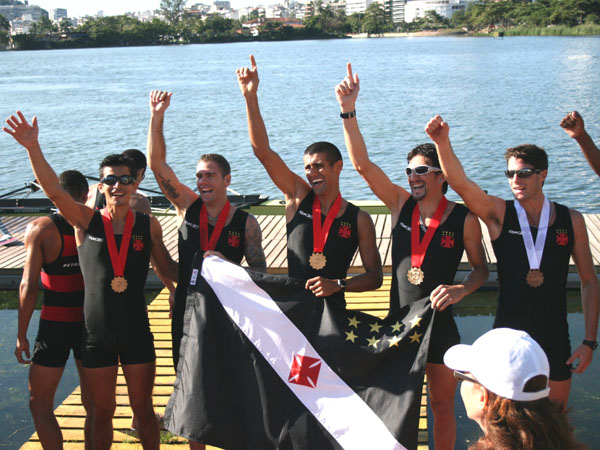 Neste domingo (06/07) na Lagoa Rodrigo de Freitas foi realizada a 5ª Regata do Campeonato Estadual de Remo. Apesar de ter somado 74 pontos contra 88 do Flamengo nesta etapa, o Vasco segue na liderança da competição com 373 pontos contra 335 do rival. A próxima regata será no dia 9 de agosto no mesmo local. A Regata Numa manhã ensolarada os remadores cruzmaltinos começaram a todo vapor vencendo as provas do Four Skiff Peso Leve, e em seguida o Single Skiff com Dayane dos Santos, que cruzou a chegada com ampla vantagem sobre os demais concorrentes. - Isto é fruto do meu desempenho nos treinamentos. Entrei bastante confiante e venci a prov - disse Dayane, atleta revelada pelo clube e aluna do Colégio Vasco da Gama. O Vasco não obteve sucesso nas duas provas seguintes e só retornou a vencer mais um páreo na prova do 8 Com Máster Feminino, na qual as remadoras cruzmaltinas, de forma emocionante e de virada, ultrapassaram as rivais nos metros finais. - Tivemos algumas dificuldades durante a semana, mas o grupo estava bem unido e com garra e conseguimos ultrapassá-las no fim! - comentou Gracilia Portela. O Gigante da Colina venceu a nona prova do dia, no Single Skiff Estreante com Edson Coutinho. Em seguida, todos os presentes no Estádio de Remo prestaram um minuto de silêncio em homenagem ao remador botafoguense Daniel Duque, assassinado na semana passada. Vale ressaltar que a última prova do 8 Com Sênior foi adiada devido à convocação das remadoras cruzmaltinas Camila Carvalho e Fabiana Beltrame, que estão com a Seleção Brasileira em treinamento para as Olimpíadas de Pequim. Na 5ª prova do dia, o Oito Com Máster Feminino, que não contou pontos para o Estadual, o barco que leva o nome do ex-presidente Eurico Miranda voltou a vencer após ter perdido, na 4ª regata, uma invencibilidade que durava desde 2000. Resultados da 5ª Regata
