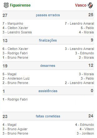 Renda/público: não divulgados Cartões amarelos: Bruno Aguiar e Leandro Soares (FIG); Rodrigo Antônio, Tiago e Vilson (VAS) GOLS: Rodrigo Antônio, 44'/1ºT (0-1); Cleiton Xavier, 32'/2ºT (1-1); Cleiton Xavier (cabeça), 41'/2ºT (2-1). FIGUEIRENSE: Wilson, Anderson Luis, Bruno Aguiar, Bruno Perone e Leandro Soares (Rodrigo Fabri, 11'/2ºT); Diogo, Magal, Marquinho, Cleiton Xavier; Edu Sales (Rafael Coelho, 26'/2ºT) e Tadeu (Ricardinho, intervalo). Técnico: Paulo César Gusmão. VASCO: Tiago, Wagner Diniz, Eduardo Luiz, Vilson e Pablo; Rodrigo Antônio, Jonílson (Mateus, 13'/2ºT), Morais e Jean (Alex Teixeira, 25'/2ºT); Leandro Amaral e Edmundo. Técnico: Antônio Lopes. ESTATÍSTICAS ![]() TROFÉU NETVASCO 2008