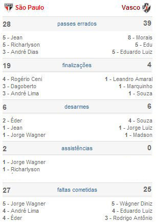 Cartões amarelos: Éder, Richarlyson e Dagoberto (SPO); Victor, Leandro Amaral e Eduardo Luiz (VAS)