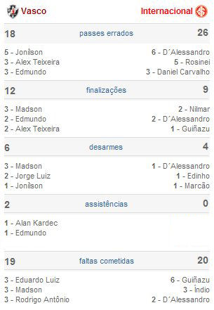 Renda / público: R$ 72.090,00 / 5.387 pagantes Cartões amarelos: Eduardo Luiz, Madson, Mateus, Edmundo (VAS), Edinho, D’Alessandro, Guiñazú (INT)