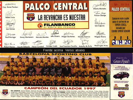 Data: 26.08.1998 (Quarta-feira) às 22h30min. Competição: Taça Libertadores da América (Final - Jogo de Volta). Estádio: Monumental Isidro Romero Carbo, em Guayaquil (EQU). Árbitro: Javier Castrilli (ARG), auxiliado por Claudio Rossi (ARG) e Jorge Rattalino (ARG). Árbitro Reserva: Claudio Martin (ARG). Público: 85.000 (estimativa). Renda: Não divulgada. BARCELONA: Cevallos; Gómez, Noriega (Aires 1' do 2º), Montanero, Quiñónez e George; Carabali, Morales e De Avila; Asencio e Delgado. Técnico: Ruben Insúa. Banco: Valencia, Montaño, Capurro, Yanes, Rosero e Rivera. VASCO: 1-Carlos Germano; 31-Vágner, 3-Odvan, 4-Mauro Galvão e 6-Felipe; 5-Luizinho (2-Vítor 43' do 2º), 8-Nasa, 19-Juninho e 16-Pedrinho (11-Ramon 29' do 2º); 7-Donizete e 9-Luizão (15-Alex 37' do 2º). Técnico: Antônio Lopes. Banco: 12-Márcio, 17-Nélson, 18-Válber e 21-Mauricinho. Gols: Luizão 24' do 1º - Vasco 1 a 0. Donizete 46' do 1º - Vasco 2 a 0. De Avila 34' do 2º - Vasco 2 a 1. Cartões Amarelos: De Avila, Gómez, Montanero, Carabali, Quiñónez e Delgado (Barcelona); Odvan, Juninho, Carlos Germano, Ramon e Felipe (Vasco). Cartões Vermelhos: Donizete 48' do 2º (Vasco). Observações: O Vasco sagrou-se campeão da Taça Libertadores da América 1998. ELENCO