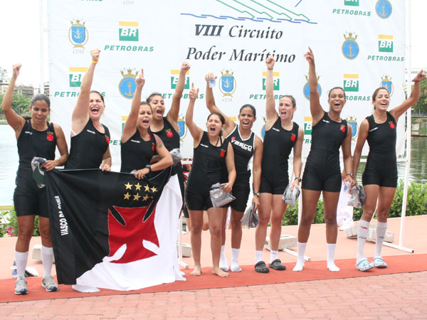 Em prova adiada da quinta Regata do Campeonato Estadual de Remo, o Vasco venceu o páreo do 8 Com Feminino Sênior A na manhã deste domingo (14/09) na Lagoa Rodrigo de Freitas. A prova aconteceu durante a realização da Regata Escola Naval. Com o resultado o Gigante da Colina aumentou a diferença de 39 para 43 pontos (515x472) para o segundo colocado Flamengo e ficou próximo de seu 46º título Estadual. - Começamos a largada junto com elas mas após os primeiros 500 metros conseguimos abrir e alcançar a vitória. A união do nosso grupo foi fundamental - comentou a atleta olímpica Camila Carvalho. Além de Camila, o Vasco formou o barco com as remadoras Kátia Alencar, Cláudia Alencar, Fabiana Beltrame, Kíssia Cataldo, Gisele Santaba, Fernanda Nunes, Mariana Cadore, além da timoneira Mônica Reginatto. A oitava e última Regata do Estadual será no dia 28 de setembro no mesmo local. ![]() ![]() ![]() Fonte: Site oficial do Vasco |
