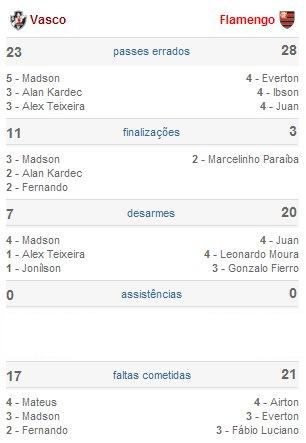 Cartões amarelos: Jorge Luiz, Mateus, Wagner Diniz (VAS); Fábio Luciano, Juan (FLA).