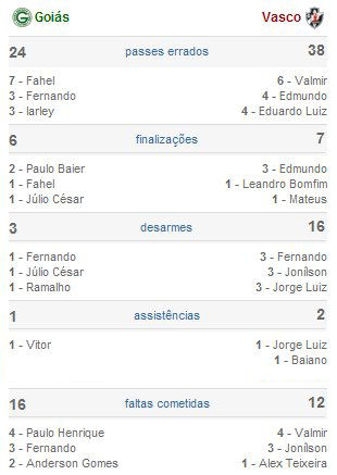Cartões amarelos: Paulo Henrique, Paulo Baier e Júlio César (GOI); Alex Teixeira (VAS)