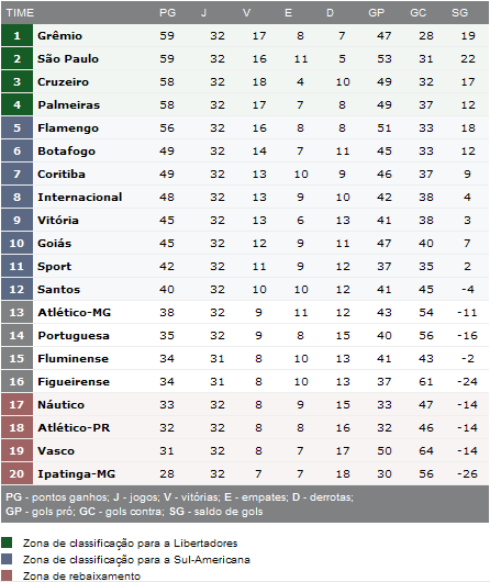 NETVASCO - 30/10/2008 - QUI - 22:29 - Vasco terminará 32ª rodada em 19º e penúltimo lugar no BrasileirãoIndependente do resultado do jogo Figueirense x Fluminense (interrompido por falta de energia elétrica no 1º tempo quando o Flu vencia por 1 a 0 e que deverá ser reiniciado na próxima 4ª-feira, dia 05/11), o Vasco terminará a 32ª rodada do Campeonato Brasileiro na 19ª e penúltima colocação, mesmo posto que ocupava ao fim da 31ª rodada.