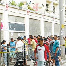 NETVASCO - 06/11/2008 - QUI - 19:43 - Arquibancadas esgotadas; restam 1.600 ingressos de cadeira A torcida do Vasco esgotou nesta quinta-feira os ingressos de arquibancada disponíveis para o jogo contra o Santos, no próximo sábado, em São Januário, pelo Campeonato Brasileiro.