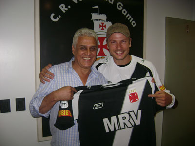 NETVASCO - 10/11/2008 - SEG - 19:17 - Rodrigo Hilbert recebeu camisa do Vasco das mãos de Roberto DinamiteO galã da novela da Globo “Três Irmãs”, Rodrigo Hilbert e marido da também atriz Fernanda Lima, deu show de simpatia em São Januário onde assistiu ao Vasco e Santos neste sábado (8/11). Pouco antes de começar a partida Rodrigo até arriscou um palpite: Vasco 1 a 0 com gol de Edmundo. Trajando bermuda, camisa e de boné, o ator estava tão à vontade que distribuiu sorrisos e fez fotos com todas as fãs, a caminho da Tribuna de Honra de onde torceu nervosamente para o Vascão ao lado do presidente do clube, Roberto Dinamite.