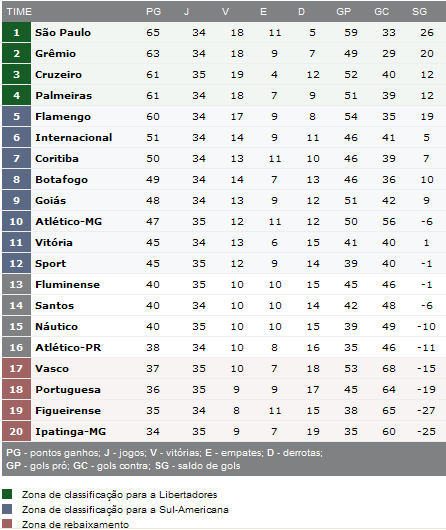 (Se o Figueirense vencer, "rouba" a 17ª posição do Vasco, ultrapassando-o em 1 ponto. Se empatar, fica 1 ponto atrás. Se perder, mantém-se 2 pontos atrás.)