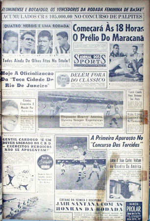 Capa do Jornal dos Sports de 18/11/1958