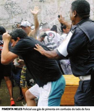 A cavalaria da Polícia Militar agiu e reprimiu os torcedores, com spray de pimenta e força física. Um senhor, vendedor ambulante, foi agredido por policiais durante a ação.
