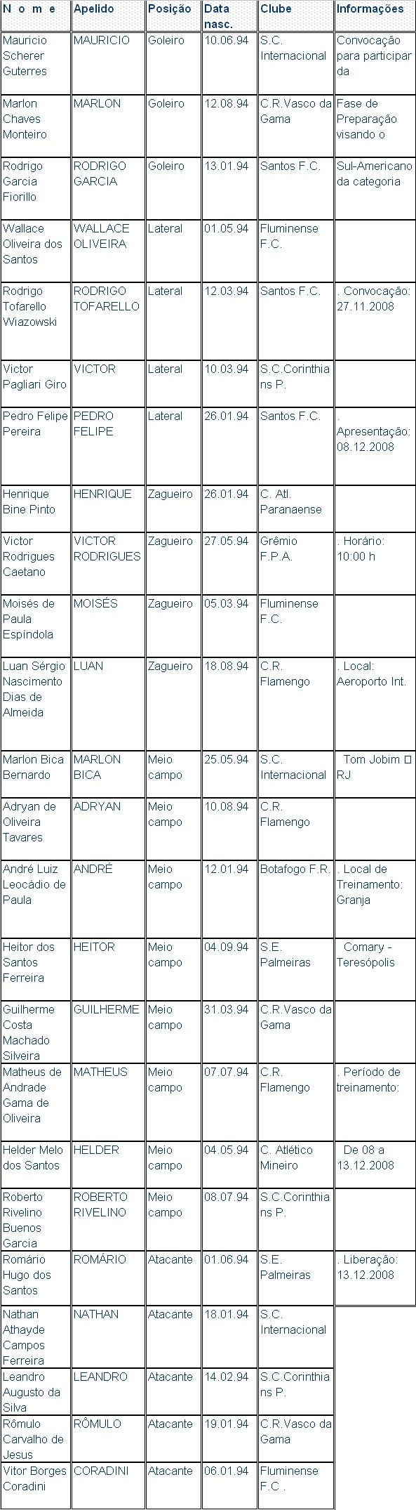 NETVASCO - 27/11/2008 - QUI - 20:05 - Infantil: Técnico demitido do Vasco, agora na Seleção, convoca 3 do clubeO técnico da Seleção Brasileira Sub-15, Leandro Simpson, convocou os jogadores para o período de preparação para o Sul-Americano da categoria que será feito na Granja Comary, de 8 a 13 de dezembro, em Teresópolis.