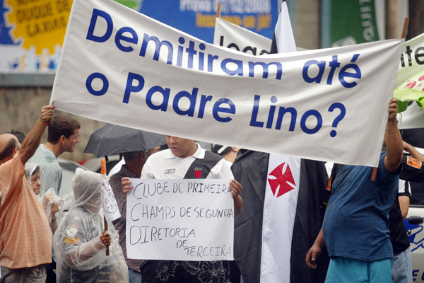 Manifestação se voltou contra alguns dirigentes Cerca de 50 pessoas fizeram neste sábado pela manhã um protesto em frente a entrada principal de São Januário pedindo a saída de dois integrantes da atual diretoria de Roberto Dinamite. A oposição do Vasco quer o desligamento de dois vice-presidentes do clube: Luiz Américo de Paula Chaves (jurídico) e José Henrique Coelho (de marketing). A chuva que caiu na manhã deste sábado no bairro de São Cristóvão, no Rio de Janeiro, atrapalhou um pouco a manifestação.