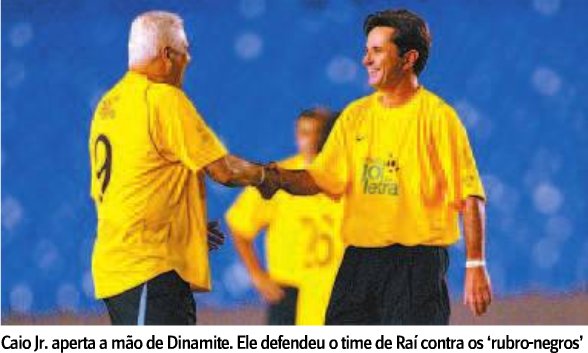 Aos 55 anos, Zico, inclusive, deu uma "caneta" no atacante Edmundo, 37, que ainda veste a camisa do time da Colina. Os rubro-negros Caio Jr., Ibson e Júnior também participaram do amistoso, assim como Maurício, ídolo do Botafogo, além de Raí e Leonardo, entre outros craques.
