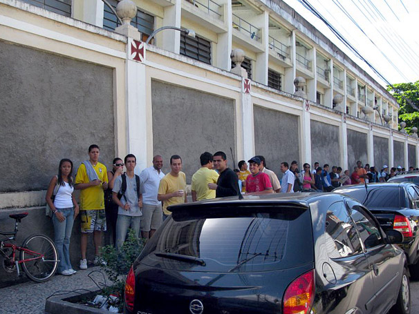 NETVASCO - 04/12/2008 - QUI - 11:31 - Torcedores fazem longas filas por ingresso em São Januário e no MaracanãA fila de torcedores é grande no Maracanã e no estádio de São Januário na manhã desta quinta-feira para a compra de ingressos para a partida entre Vasco e Vitória. A venda antecipada recomeça às 11h. Da carga de 24.070 entradas mais da metade já está na mão de cruzmaltinos. Foram comercializados 12.110 bilhetes, sendo 11.672 arquibancadas, 313 bilhetes para sócios e 125 cadeiras para não-sócios no primeiro dia.