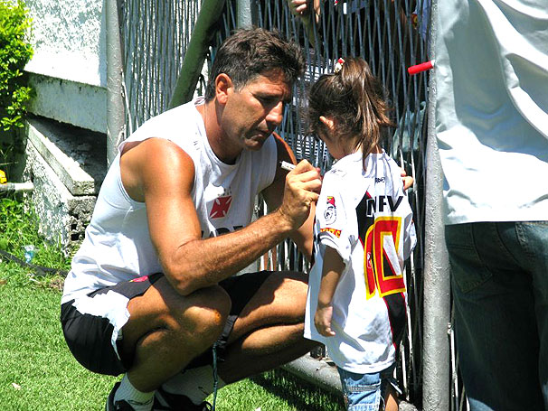 Além de liberar a entrada da pequena vascaína, Renato Gaúcho também autografou a sua camisa e posou para fotos ao seu lado.