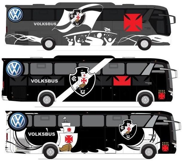 NETVASCO - 05/12/2008 - SEX - 12:35 - Internautas já podem escolher a pintura do novo ônibus do VascoEm parceria com a Volkswagen Caminhões e Ônibus, o Vasco terá um ônibus exclusivo para o transporte de seus atletas. Para a escolha da pintura exterior do veículo, os vascaínos já podem votar em uma das três opções existentes no site www.vwcofutebol.com.br.