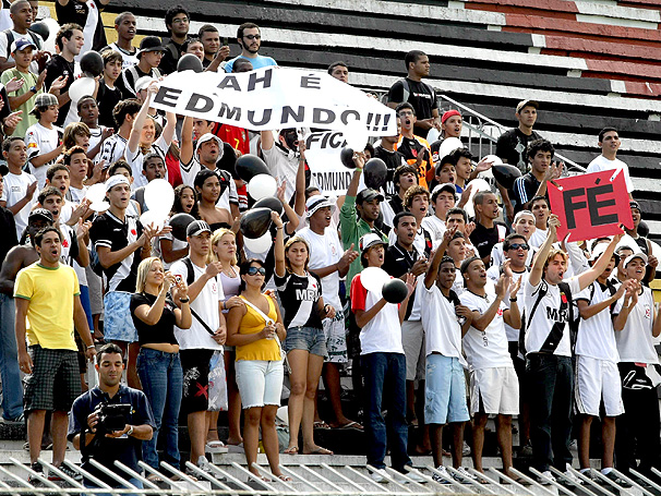 Torcedor ganhou até chuteira do ídolo Edmundo Edmundo resolveu, então, ir para os braços da galera. O portão que separa o campo da arquibancada foi parcialmente aberto. Alguns torcedores começaram a entrar, de forma organizada, para tirar fotos.