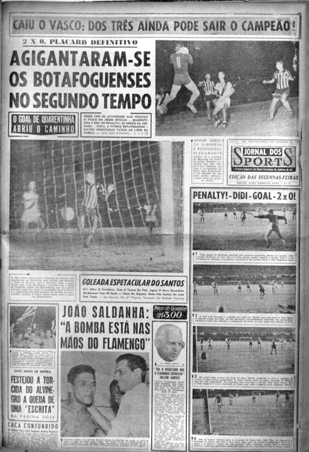 Sob enorme responsabilidade defrontaram no clássico excepcional da penúltima rodada os quadros de Botafogo e do Vasco. Bem que o público compreendeu o quanto significava o resultado do “match”, comparecendo em massa ao Maracanã, quase lotando suas dependências. Para o Vasco, o prélio era decisivo. Bastava-lhe um empate para sagrar-se campeão carioca de 1958 por antecipação, dando-lhe o direito de enfrentar o Flamengo com as faixas de vitorioso. Para o Botafogo, era a luta pelo direito de tentar um supercampeonato, desde que vencesse e também o Flamengo o imitasse.