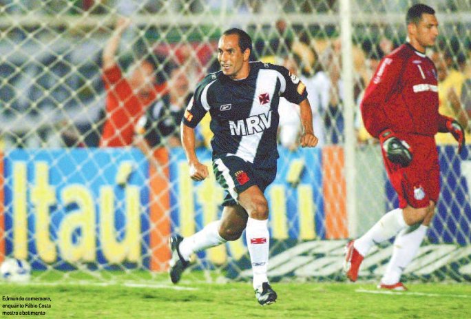 Último gol de Edmundo com a camisa do Vasco, contra o Santos, de pênalti