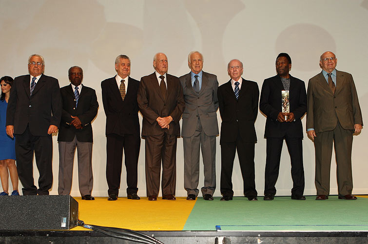 Zito, Moacir, Orlando Peçanha, João Havelange (presidente da CBD à época), Zagallo, Pelé e Pepe