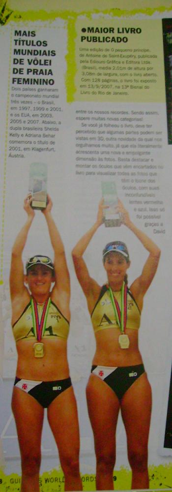 Adriana Behar e Shelda, que formaram a dupla mais vitoriosa da história do vôlei de praia, ganharam uma citação na edição 2009 do famoso livro "Guinness World Records" (página 8) como maiores campeãs mundiais da modalidade em todos os tempos. Na foto ilustrativa, não faltou o uniforme vascaíno que elas tanto utilizaram nas areias de todo o mundo por quase uma década. É a única alusão a um clube brasileiro em todo o livro.