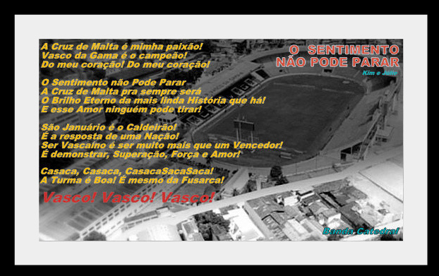 NETVASCO - 31/12/2008 - QUA - 01:59 - Ouça a música 'O Sentimento Não Pode Parar', da Banda CatedralA Banda Catedral, que em 2007 gravou o hino do Vasco (clique para saber mais), lançou em sua página no MySpace uma nova música dedicada ao clube: "O Sentimento Não Pode Parar".