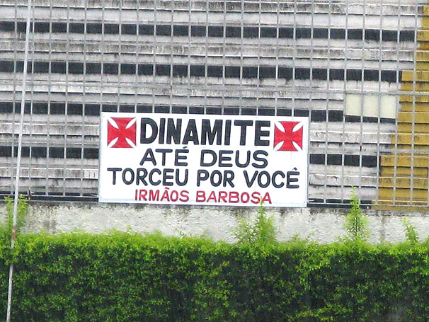 NETVASCO - 05/01/2009 - SEG - 18:57 - Dinamite recebe mensagem de apoio em São JanuárioO ano de 2009 começou nesta segunda-feira para o Vasco. E o presidente Roberto Dinamite recebeu uma mensagem de apoio. Na grade da arquibancada de São Januário, de frente para a sala da presidência, torcedores prenderam uma faixa com a frase "Dinamite, até Deus torceu por você". O Vasco terá uma temporada difícil pela frente. Rebaixado para a Série, o clube vai lutar para voltar à elite do futebol brasileiro a partir de maio. E para isso está reestruturando o elenco e o departamento de futebol.