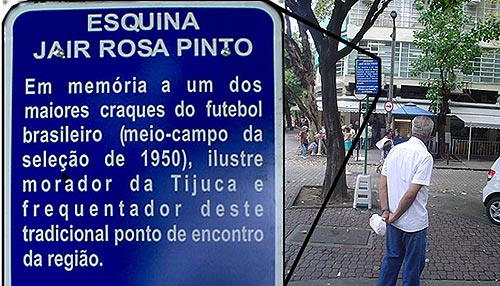 A “esquina Jair Rosa Pinto” fica na Praça Saens Peña, no coração do bairro. E marca o local onde o craque, durante anos, se reuniu com amigos para conversar. Invariavelmente, um assunto dominava os papos: futebol.