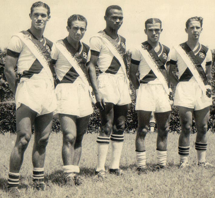 Ataque campeão carioca invicto em 1945: Ademir, Lelé, Isaías, Jair e Chico