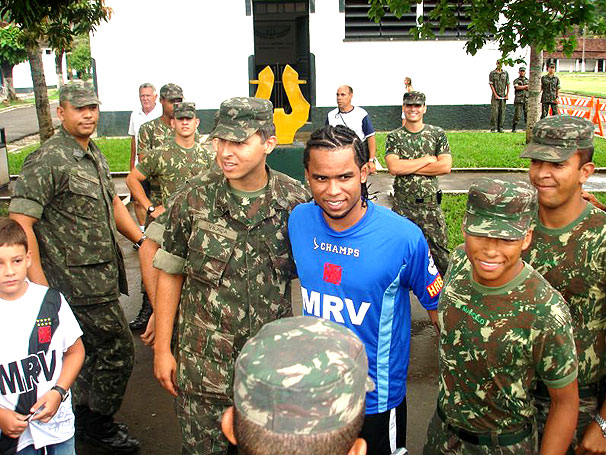 NETVASCO - 08/01/2009 - QUI - 16:53 - Carlos Alberto é assediado por soldados em Vila Velha-ESO meia Carlos Alberto finalizou os exames médicos na manhã desta quinta-feira, em Vila Velha, no Espírito Santo. Horas mais tarde, o jogador se juntou ao restante dos companheiros que trabalhavam no gramado do 38º Batalhão de Infantaria. Sem atuar há 45 dias, o principal reforço do Vasco para a temporada 2009 fez apenas um trabalho leve.