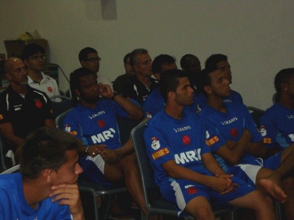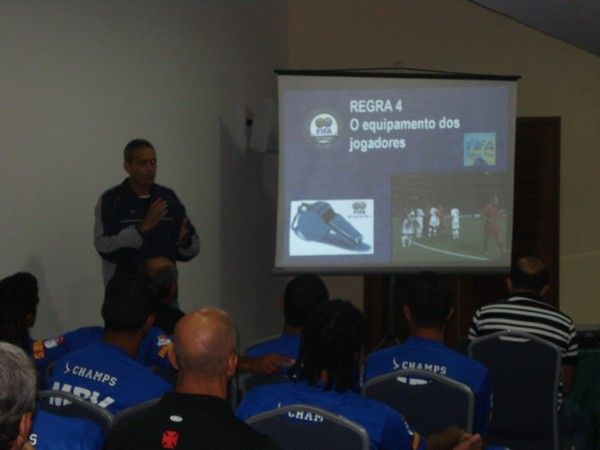 NETVASCO - 12/01/2009 - SEG - 21:12 - Jogadores assistem palestra sobre arbitragemNa noite desta segunda-feira (12/01), os jogadores do Vasco assistiram uma palestra ministrada pelo árbitro Wallace Nascimento Valente, do Espírito Santo e aspirante a FIFA, sobre as regras do futebol.