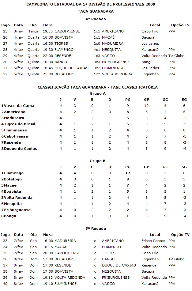 NETVASCO - 05/02/2009 - QUI - 23:49 - Vasco lidera Grupo A e tem a 2ª melhor campanha do EstadualDepois de um mau início, em que foi derrotado em casa por 2 a 0 pelo Americano, o Vasco chegou à liderança do Grupo A terminada a 4ª rodada da Taça Guanabara. O Gigante da Colina também é dono da 2ª melhor campanha da competição até o momento.