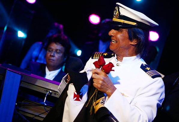 Depois de falar sobre o seu time do coração, Vasco da Gama, na segunda divisão, durante a coletiva do projeto "Emoções em Alto Mar", na segunda-feira, 9, Roberto Carlos foi contemplado com uma camisa do time cruzmaltino durante o show no navio.