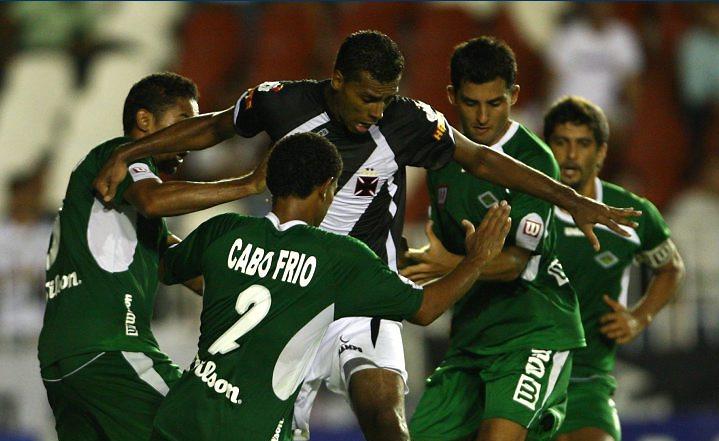 Diante de um Cabofriense bastante recuado e esperando oportunidades de contra-ataques, o Vasco passou praticamente toda a primeira etapa no campo do adversário, que não assustou nas poucas vezes em que conseguiu armar uma jogada ofensiva. Já os donos da casa, mesmo diante de uma marcação muito forte no meio-campo, criaram boas chances e mereciam ter ido para o vestiário com a vantagem no placar. Aos três minutos, Ramon cruzou da esquerda, e Rodrigo Pimpão, na entrada da pequena área, desperdiçou ótima oportunidade ao pegar de primeira e mandar por cima do gol. Logo depois, em cobrança de escanteio, Fernando subiu bem e cabeceou com perigo, rente à trave esquerda.