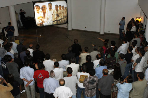 Às 21h, para deleite das cerca de cem pessoas presentes, todas da família do Jiu-Jitsu, foi exibido em telão as grandes fotos da vida do mestre. Não faltaram fotos de Helio lutando, ou cenas raras como o mestre jogando pingue-pongue e tocando violão. Na platéia, eminências da sociedade (como o corregedor Luiz Zveiter, o criminalista Arthur Lavigne, o oftalmologista Almir Ghiaroni, o político José Moraes, o empresário Mario Rosado e tantos outros), cascas-grossas (Kyra e Kron Gracie, Amaury Bitetti, Nino Schembri, Léo Leite, Fabrício Morango, Letícia Ribeiro etc) e discípulos, como o sobrinho-filho Robson Gracie, João Alberto e Álvaro Barreto e o delegado Helio Vigio.