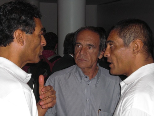 Grande-benemérito e ex-vice-presidente do Vasco dr. Pedro Valente entre os filhos de Hélio Gracie, Rorion e Rickson Gracie.