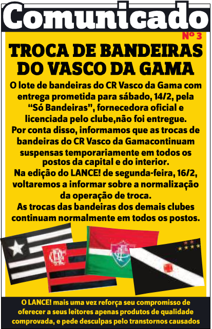 NETVASCO - 15/02/2009 - DOM - 04:35 - Lance divulga comunicado sobre promoção de bandeira do Vasco