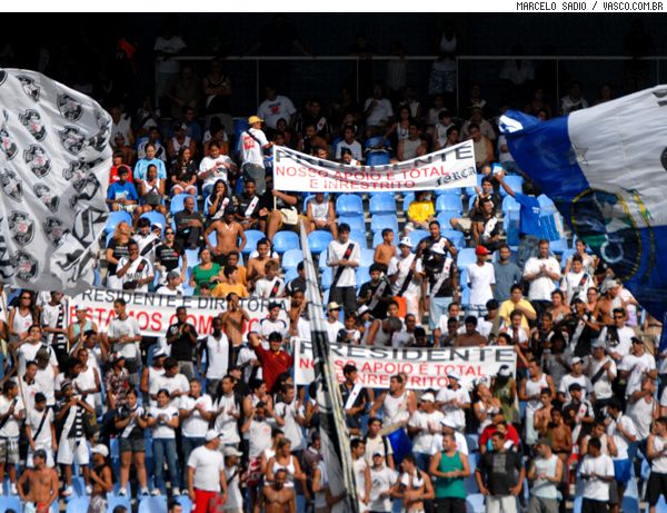 NETVASCO - 15/02/2009 - DOM - 19:36 - Faixas de apoio a Dinamite e diretoria no EngenhãoDurante o jogo deste domingo (15/02) contra o Madureira, no Engenhão, a torcida cruzmaltina levou faixas de apoio ao Presidente Roberto Dinamite e à Diretoria do Vasco. Algumas faixas tinham os seguintes dizeres: “Nosso apoio é total e irrestrito” e “Estamos com vocês”.
