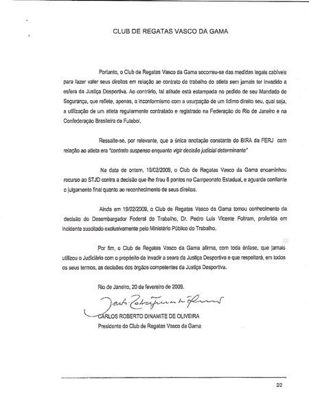 Anterior: 15:26 - Corinthians e Cruzeiro querem patrocínio da EletrobrásPróxima: 16:49 - Vasco diz ter dinheiro mas estar com dificuldade em obter certidões