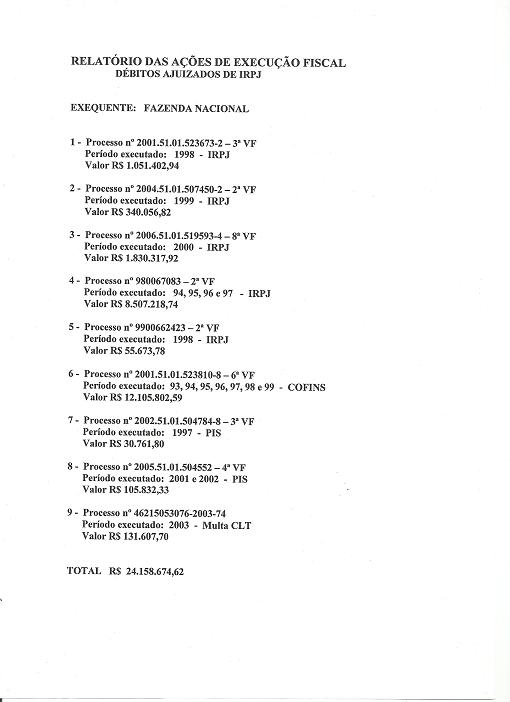 a) Durante a administração Agathyrno da Silva Gomes nada foi recolhido à Fazenda Nacional relativo ao IRPJ, PIS e demais tributos, dívidas que foram liquidadas por administrações posteriores.