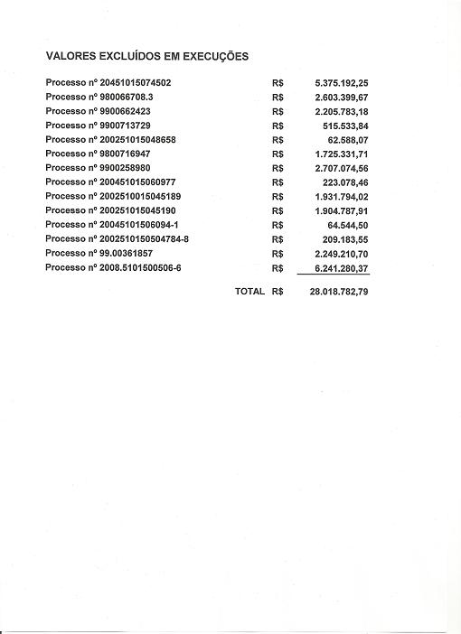 c) A administração Eurico Miranda excluiu débitos ajuizados (valores que estavam sendo executados e que foram excluídos do parcelamento), através de recuperação de créditos ou pagamento, conforme demonstrado no item 2.