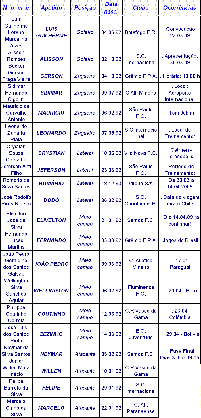 NETVASCO - 23/03/2009 - SEG - 20:41 - Coutinho e Willen convocados para o Sul-Americano Sub-17O técnico Lucho Nizzo convocou nesta segunda-feira, na sede da CBF, os jogadores que disputarão o Sul-Americano Sub-17 em Iquique, no Chile, de 17 de abril a 9 de maio.